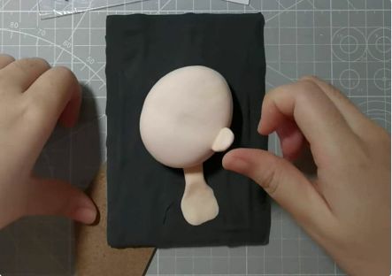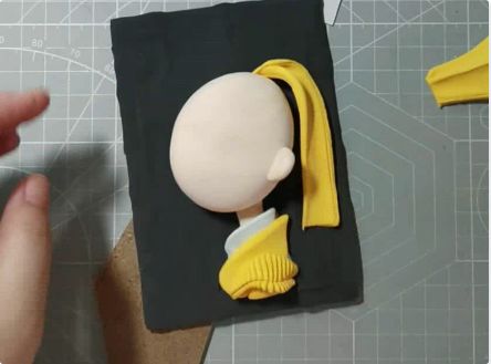 14、用同色系的粘土盖在头巾和头部连接的位置。