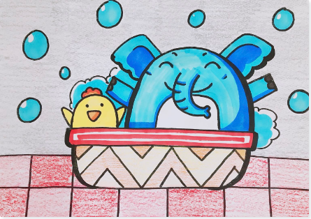 创意绘画——小象洗澡